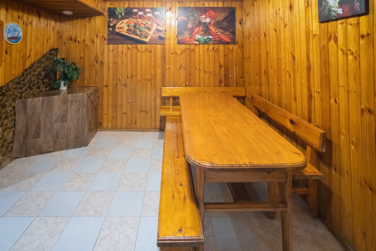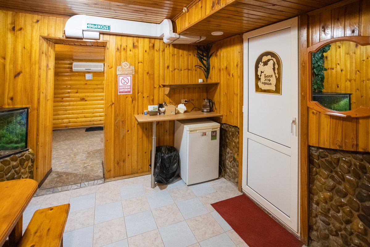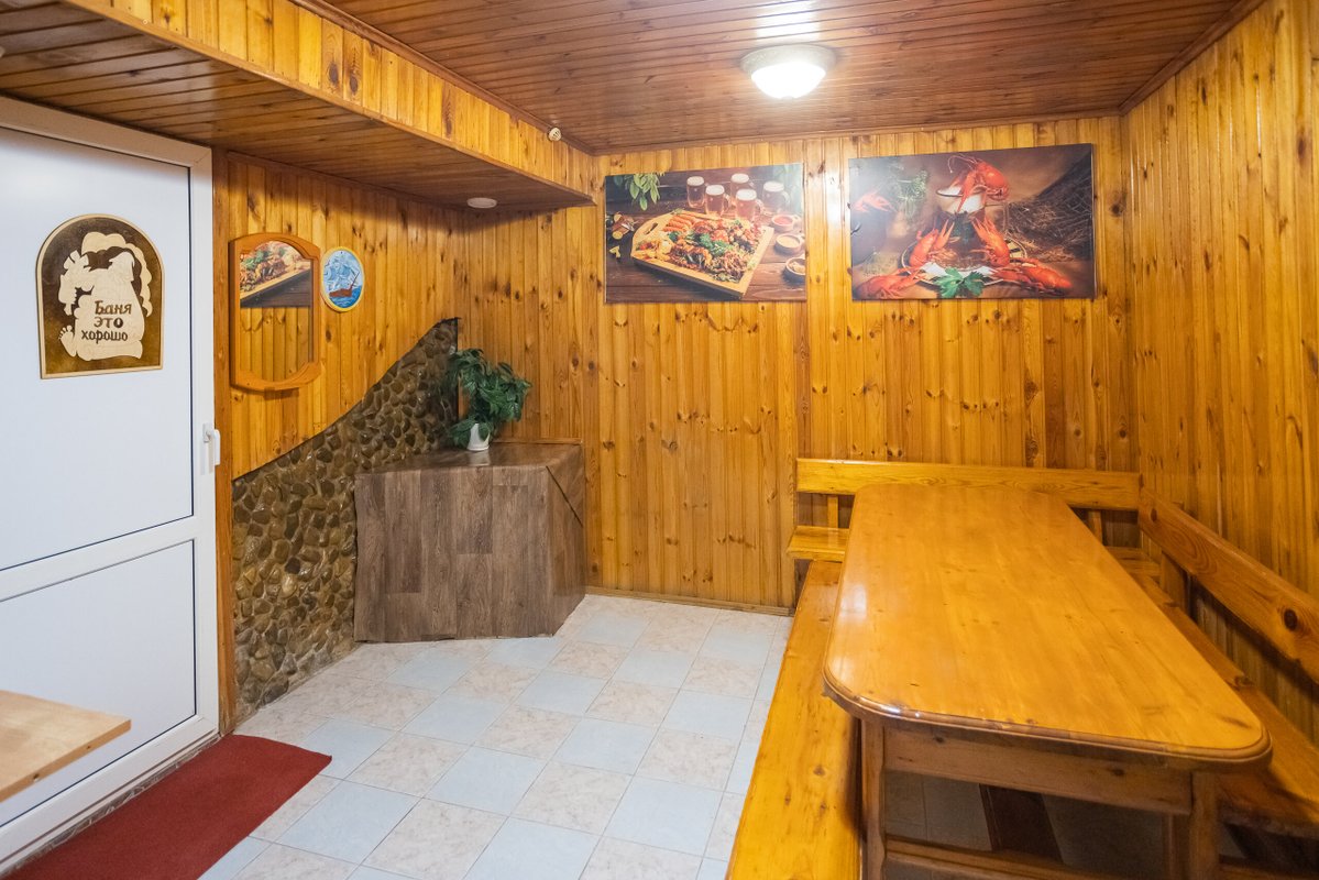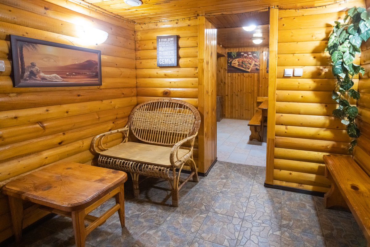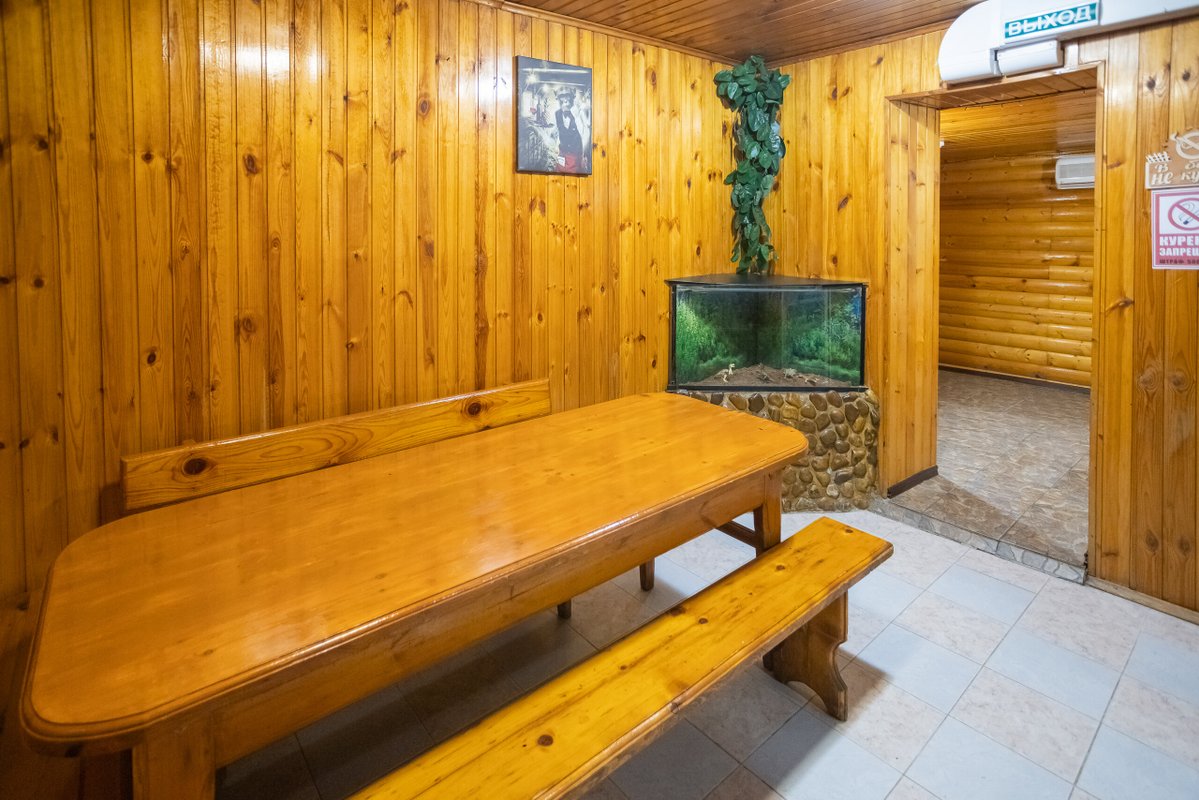 Не хочется в бассейн? Не проблема! Вместо этого можно передохнуть в нашей комнате отдыха. Мы постарались создать здесь уютный, стильный интерьер из преимущественно натуральных, безопасных материалов, выбрать мебель, которая будет в равной степени удобной и эстетичной. Надеемся, что вам понравится! Для создания настроения мы можем предложить вам бильярд, кальян и караоке. Мы не располагаем собственной кухней, но не возражаем, если вы придете со своей едой и совместите баню с небольшим застольем. Только помните, что плотная трапеза непосредственно перед посещением парной - это не самая удачная идея, согласно мнению докторов. А вот после парной можно трапезничать смело!